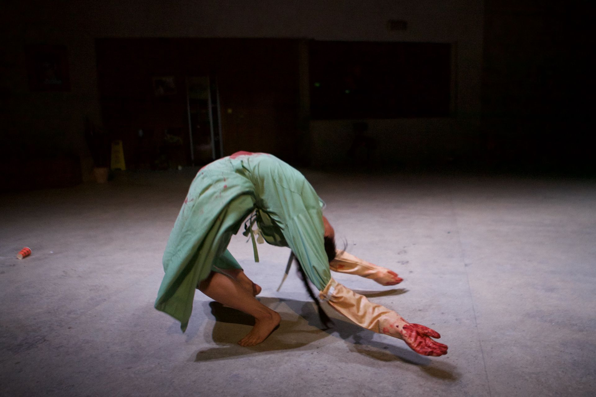 Moeder (Mother) is the second volume of Peeping Tom’s family trilogy that opened with Vader (Father) in 2014, directed by Franck Chartier, and ended in 2019 with Kind (Child). The world première took place on 29 September 2016 at our partner Theater im Pfalzbau (Ludwigshafen, DE). Since then, Moeder has been touring extensively throughout Europe.
