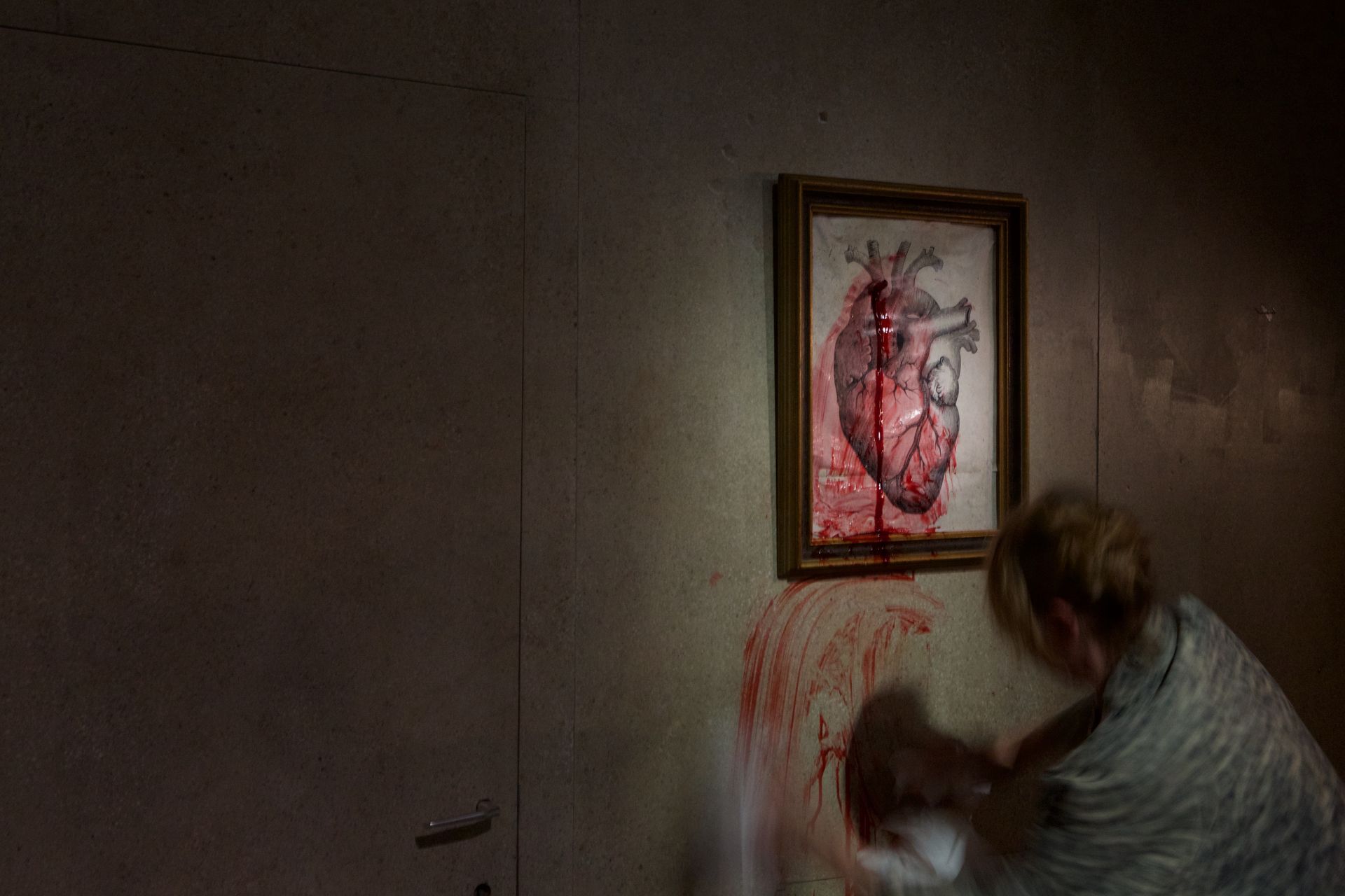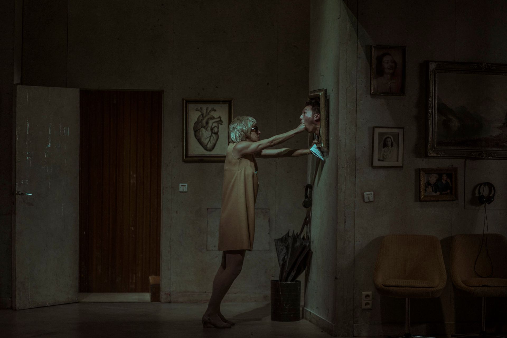 “ Moeder is not about a mother, but about several mothers. We talk about motherhood, absence, lack. The play searches the memory and the subconscious to reveal what the mother carries as desires, fears, sufferings or violence. For this piece, I wanted a set design that could represent several spaces, like the multiplicity of mothers. The action takes place in a museum, but can also be seen as a private exhibit space, where family pictures and photos are displayed.”